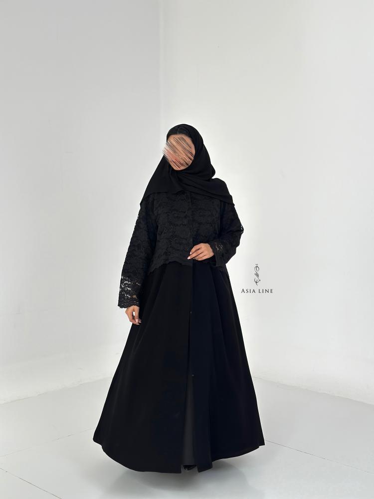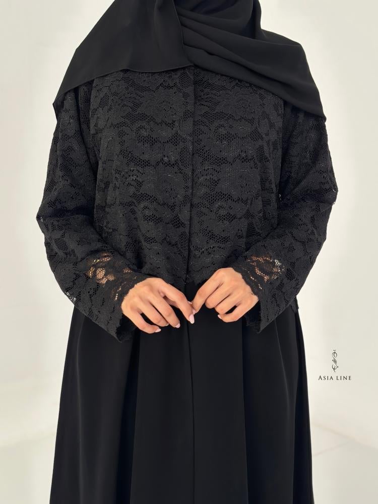 بإطلالة أنيقة مع هذه العباية مصممة من قماش كريب سيراميك ، الذي يتميز بملمسه الناعم وانسيابيته الجذابة. تأتي بقصة A الكلاسيكية التي تمنحك مظهرًا أنيقًا وانسيابياً، مع لمسة فاخرة من قماش الدانتيل في الجزء العلوي، مما يضفي لمسة أنثوية راقية تناسب مختلف المناسبات.